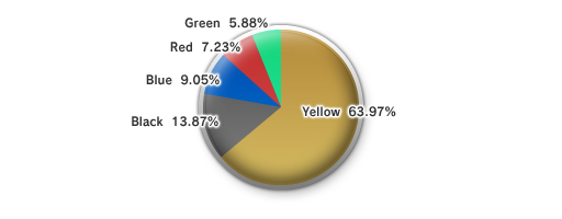 At the moment, yellow chocobos are annihilating the competition, followed by black chocobos, then blue chocobos, red chocobos, and lastly by green chocobos. When a chocobo first hatches from an egg, most people note how common yellow chocobos are--an observation clearly supported by the data here.