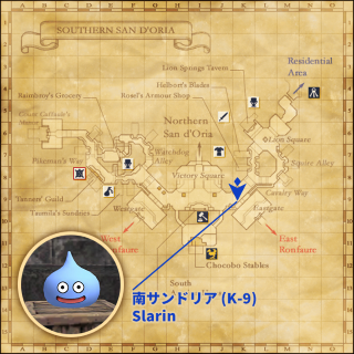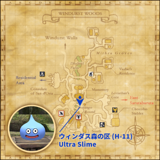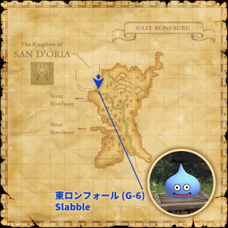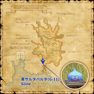 "Slabble" 東ロンフォール(G-6)/ "Slime Tarou" 南グスタベルグ(J-7)/ "Sline" 東サルタバルタ(G-11)