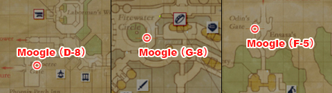 Northern San d'Oria (D-8) / Bastok Markets (G-8) / Windurst Waters (north side) (F-5)