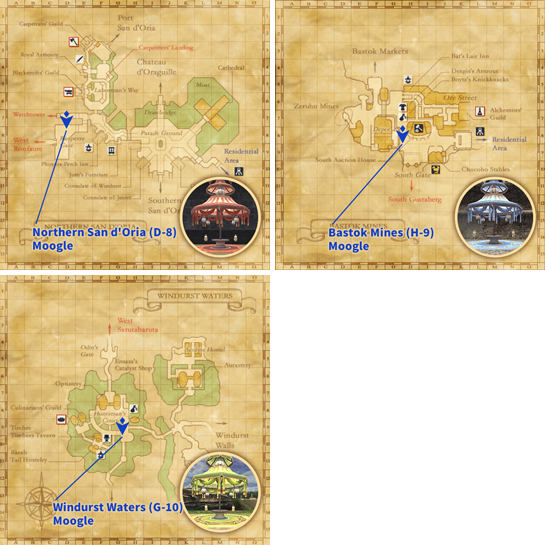 1. Speak to the moogle.Speak to a moogle in the following locations in order to confirm the necessary trading cards for the event.