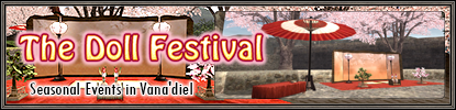 In each nation, you'll find cherry blossoms blooming, as well as special doll stands set up to celebrate this festive occasion. You can also receive Doll Festival-related items from the moogles once per day (Vana'diel time). Make sure to obtain these uniquely seasonal rewards!