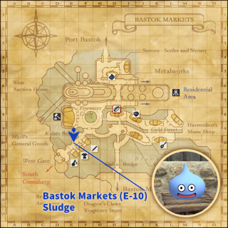 Slarin in Southern San d'Oria (K-9) / Sludge in Bastok Markets (E-10) / Ultra Slime in Windurst Woods (H-11)