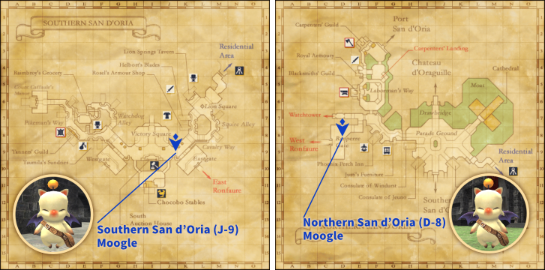 Speak to the Curator Moogle in one of the following areas to check the items needed to make the exchange.